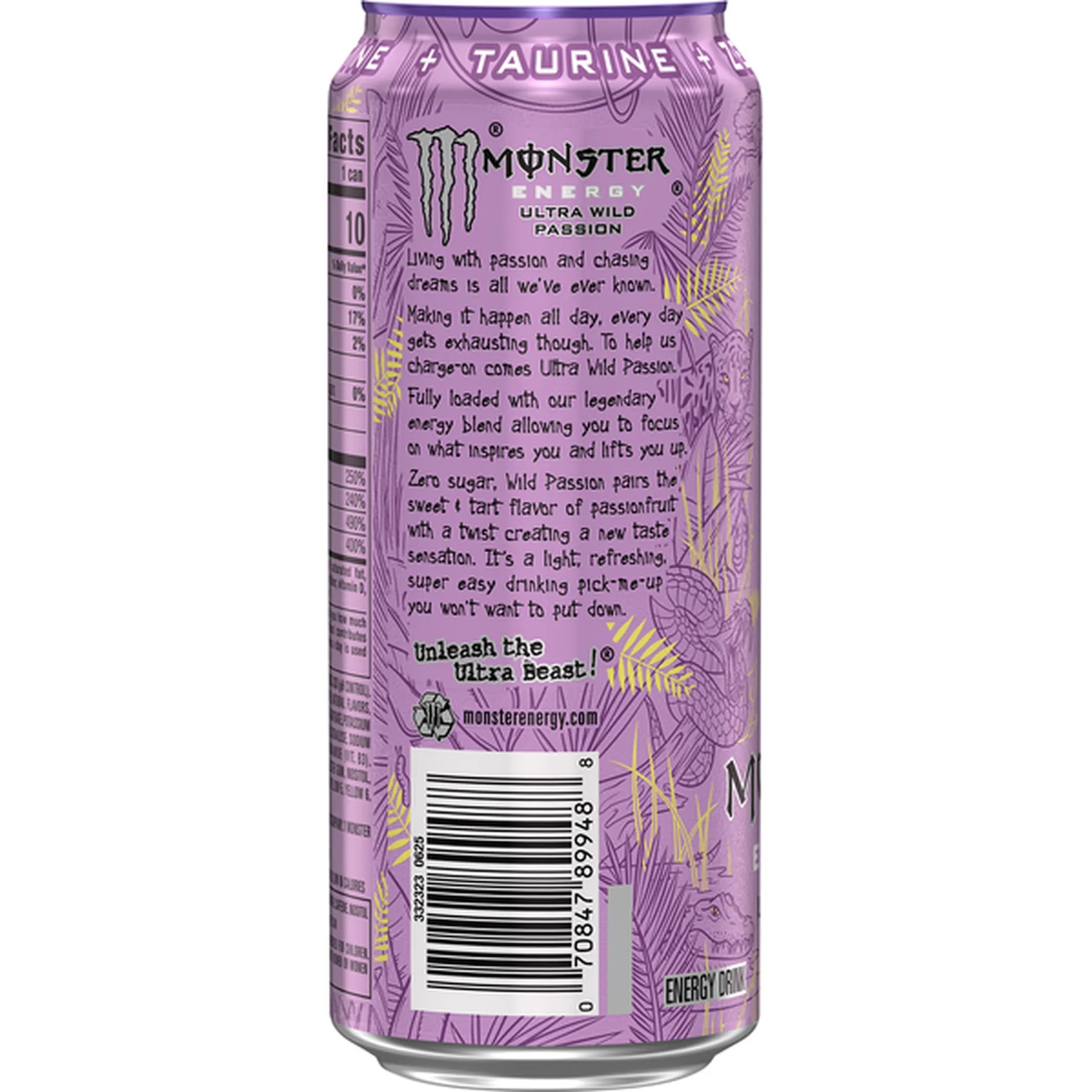 Zero sugar, 100% wild. Maak kennis met Monster Ultra Wild Passion – de nieuwste suikervrije variant uit de Ultra-serie, rechtstreeks uit de USA. Deze frisse, tropisch-geïnspireerde energy drink combineert exotische passievrucht met de kenmerkende Monster-kick, allemaal verpakt in een stijlvol mat blik met florale paarse en roze tinten. Ultra Wild Passion is niet alleen een smaakervaring, maar ook een visueel statement.