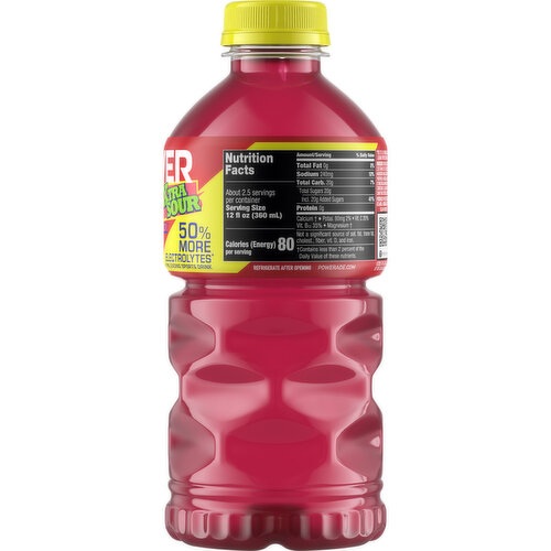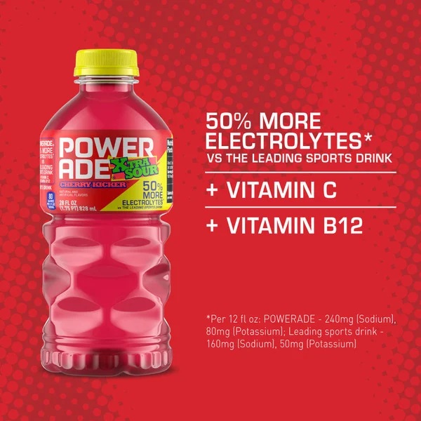 Ontdek de explosieve smaak van Powerade Xtra Sour Cherry Kicker ā een Amerikaanse klassieker die je dorst blust en je energie een boost geeft. Met zorgvuldig geselecteerde elektrolyten en vitaminen ondersteunt dit sportdrankje je lichaam tijdens inspanning of een actieve dag, terwijl je geniet van een pittige, zure kersensensatie.